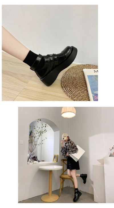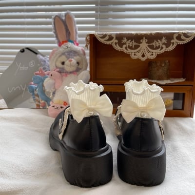 Spring Autumn Sweet Ruffles Lolita Shoes JK Round Leather Shoes
